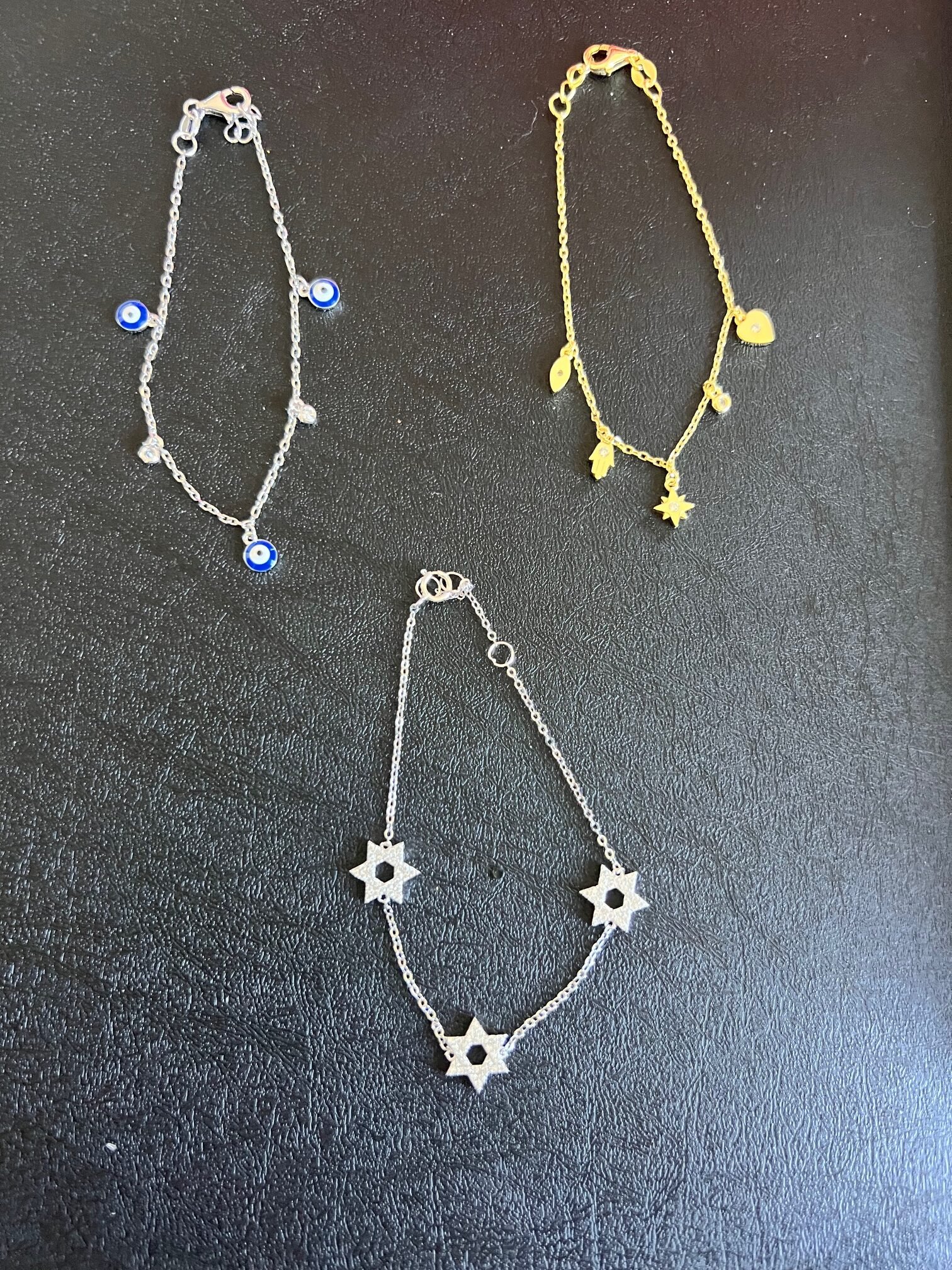 Beautiful sterling silver bracelets featuring Jewish symbols. Choose from protective Blue Evil Eye, iconic Magen David (Star of David), or versatile charm bracelet designs. Each bracelet is 7 inches, crafted in sterling silver for lasting quality. Perfect for Jewish gifts, bat mitzvah presents, Hanukkah celebrations, and everyday spiritual protection. Stylish layering pieces or solo statements.